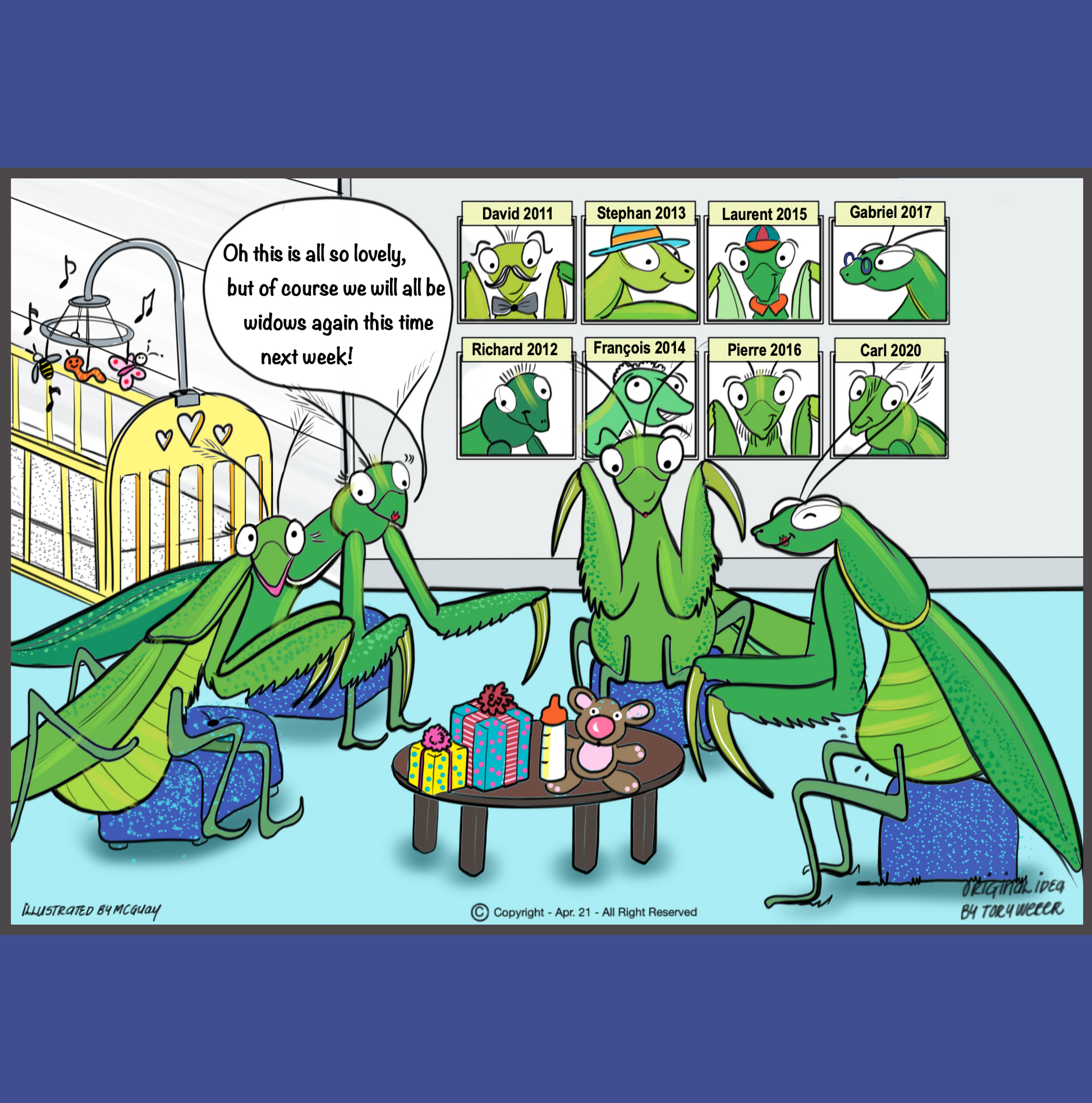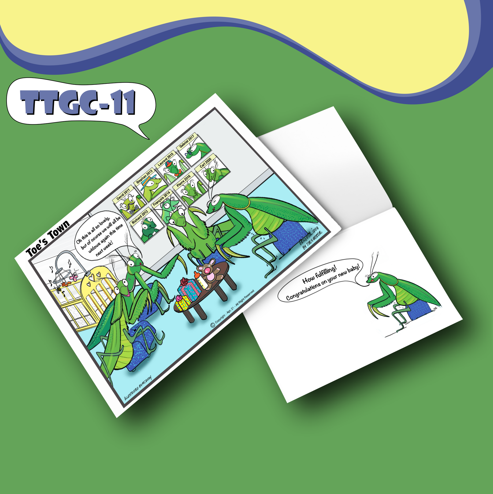 For those of you with an understanding of the insect world, you would know that female praying mantis' eat their partners after mating. Make sure you know the recipient well before giving this Congratulations on the New Baby Card!