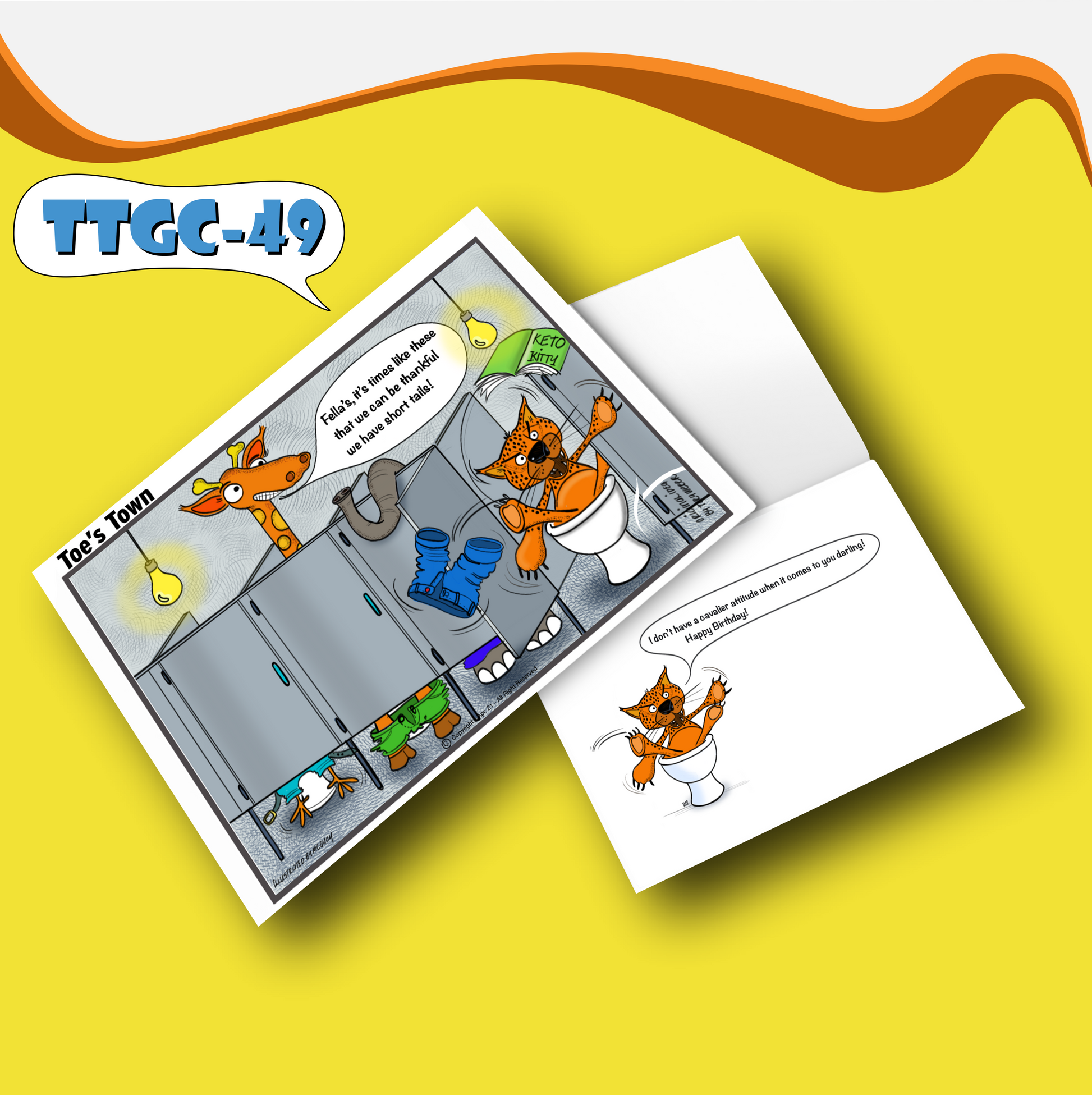 Toilet tail placement is a thing. This funny Birthday Card shines a light on the dangers of having long tails.